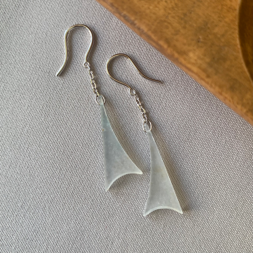 Icy White Triangular Dangling Ear Hooks in 18K White Gold