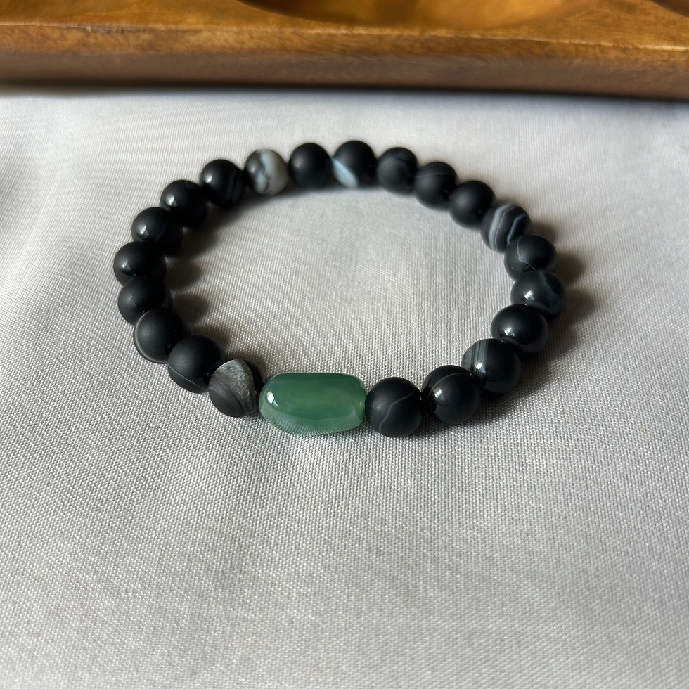 Matcha Green Bead Bracelet with Black Stone Beads