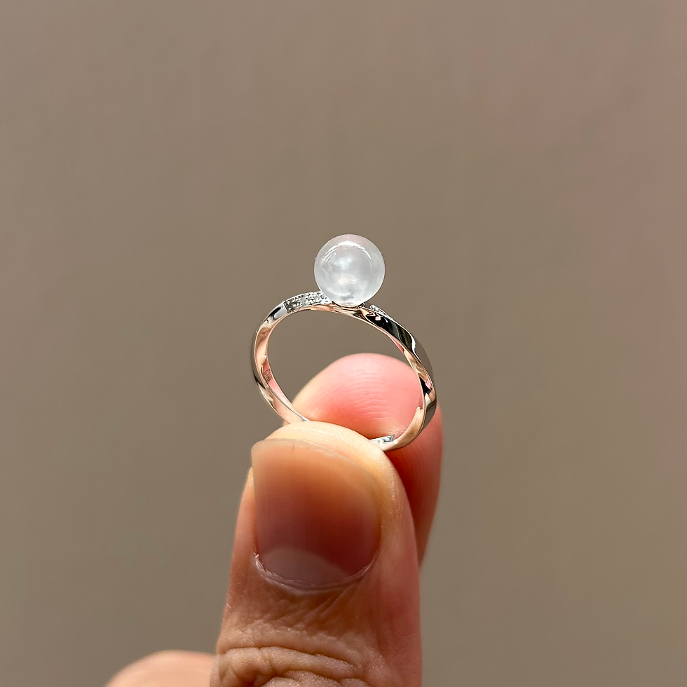White and Ocean Green Jadeite Hololith Ring (HK18/US8)